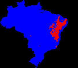 Modelo exploratório que utiliza dois algoritmos e exibe apenas áreas onde há concordância entre eles. Pode ainda resultar numa aproximação grosseira do nicho da espécie, pois a quantidade de pontos ainda não atingiu um patamar adequado e qualquer ponto fora do padrão dos demais pontos pode tornar o modelo amplo. Não é recomendável utilizá-lo em tomada de decisão, e sim para obtenção de novos pontos de ocorrência bem como estudos preliminares sobre a biogeografia da espécie. Note que os modelos originais (contínuos) também podem ser úteis neste sentido. Atenção: o modelo não é da distribuição real e sim da distribuição potencial, ou seja, indica áreas supostamente adequadas ambientalmente para a espécie de acordo com os parâmetros da modelagem.